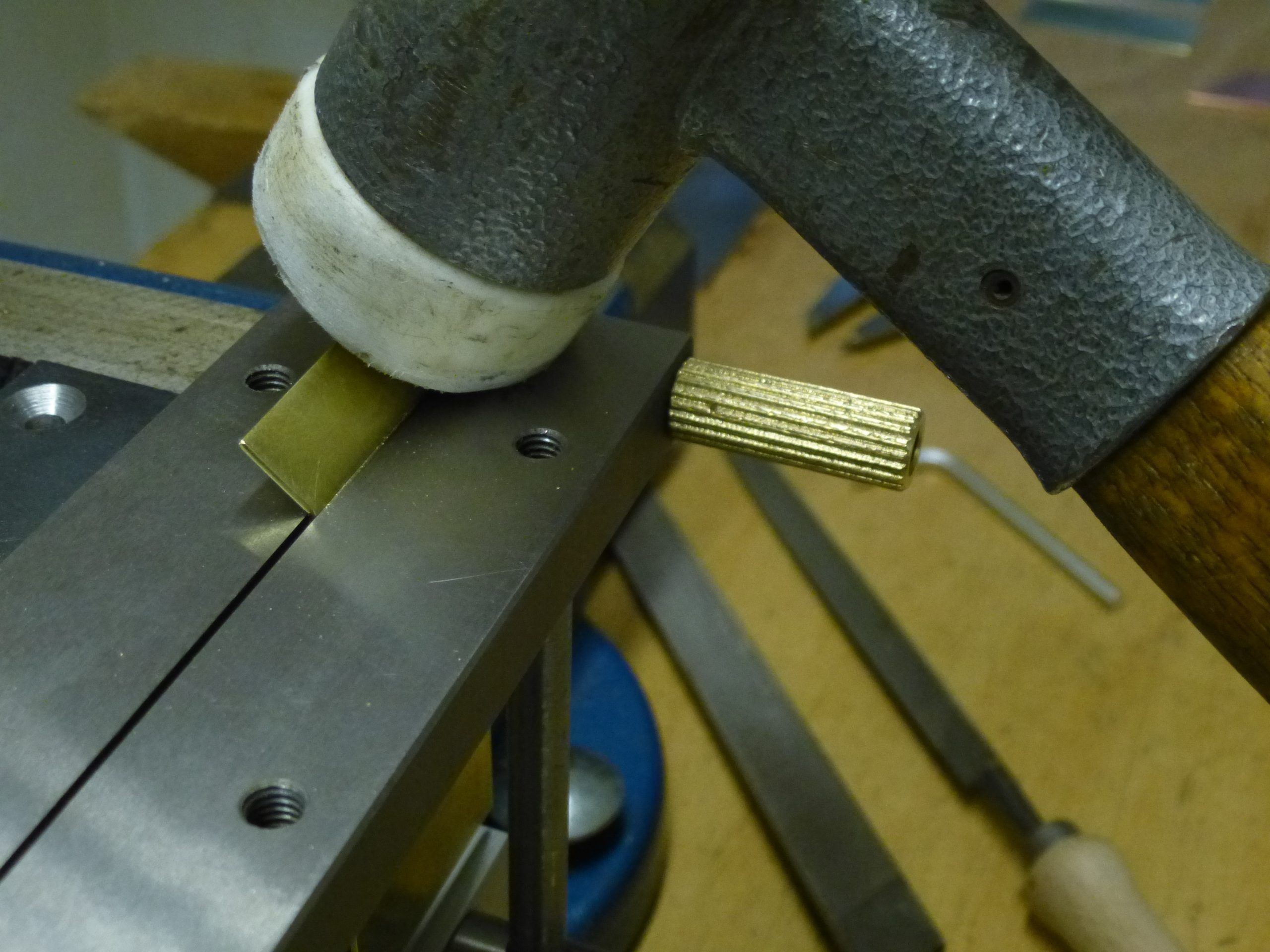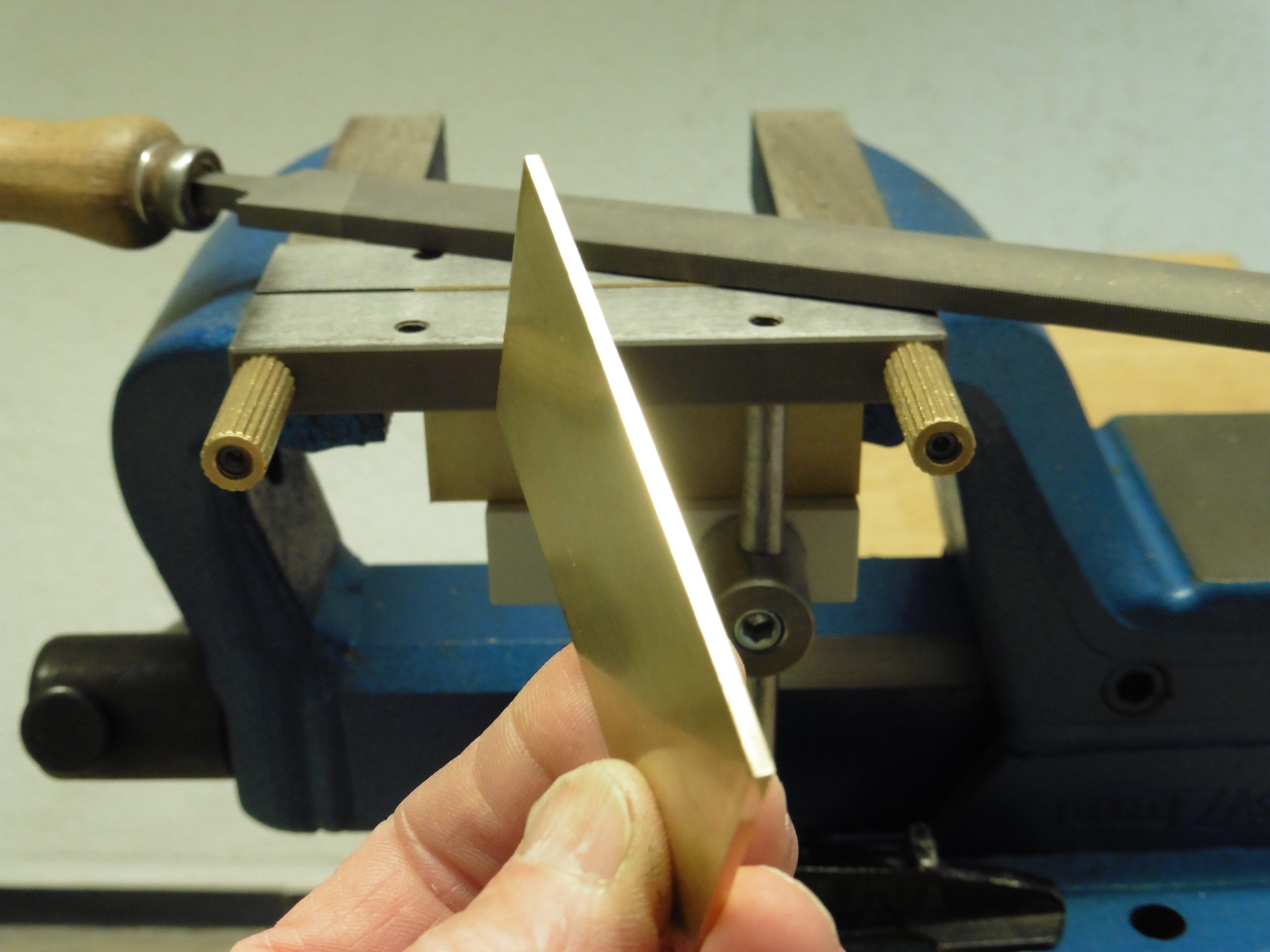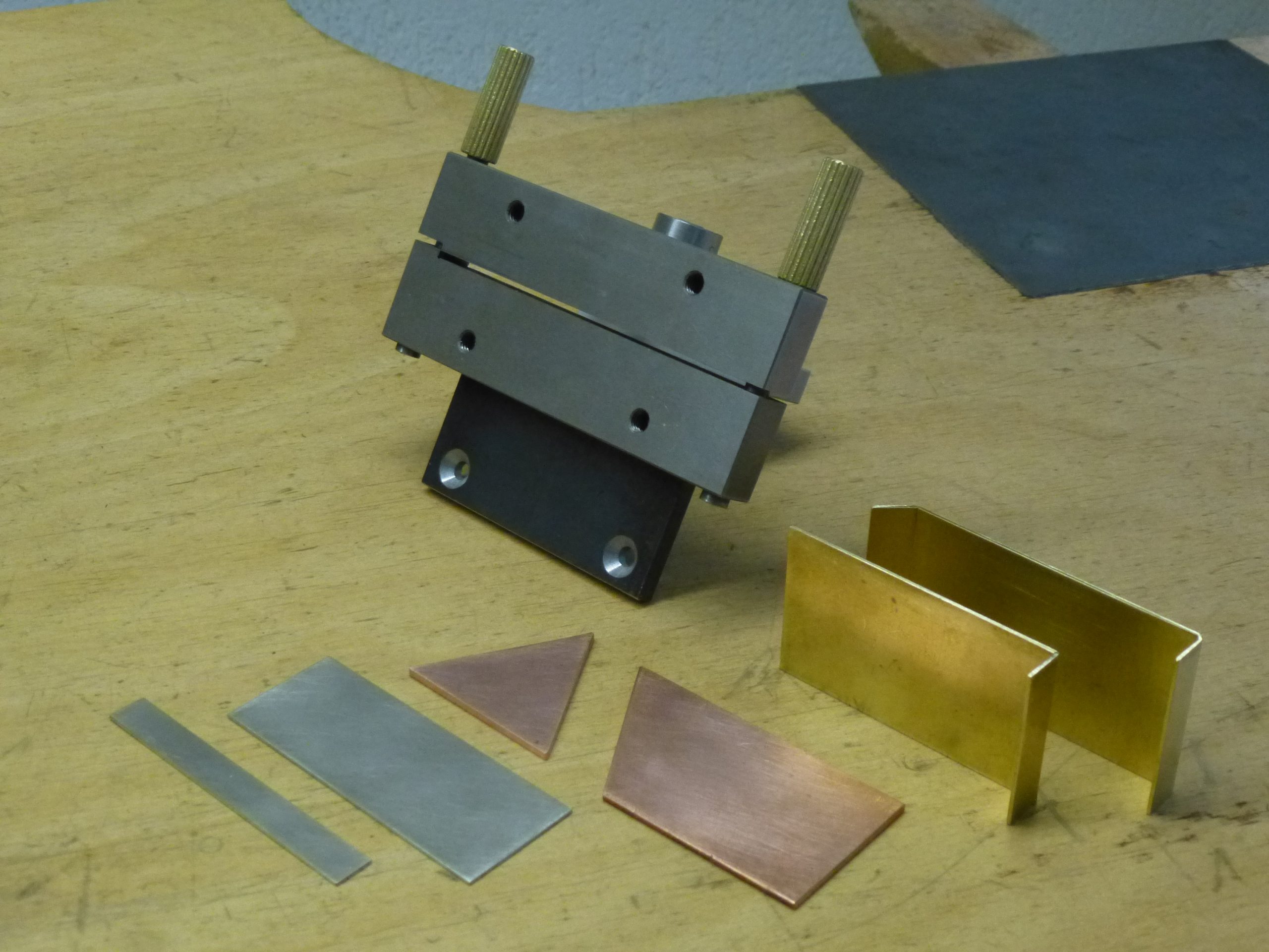 Abkantarbeiten von Blechen bis ca. 1 mm lassen sich mit der Formatschnittlehre (im Schraubstock eingespannt) verrichten.